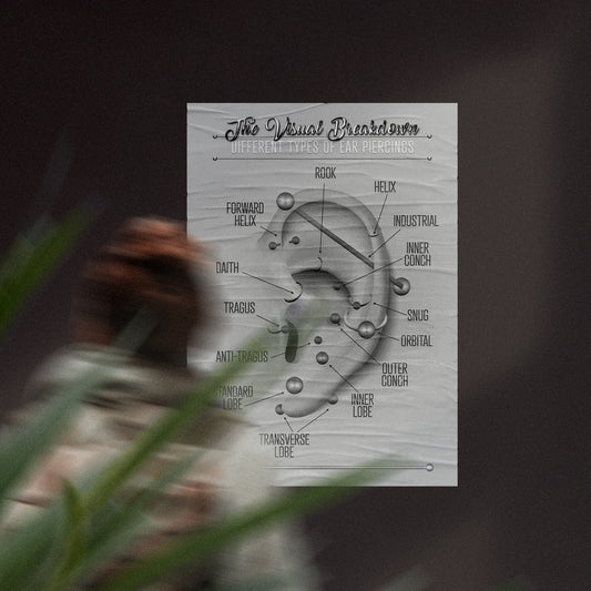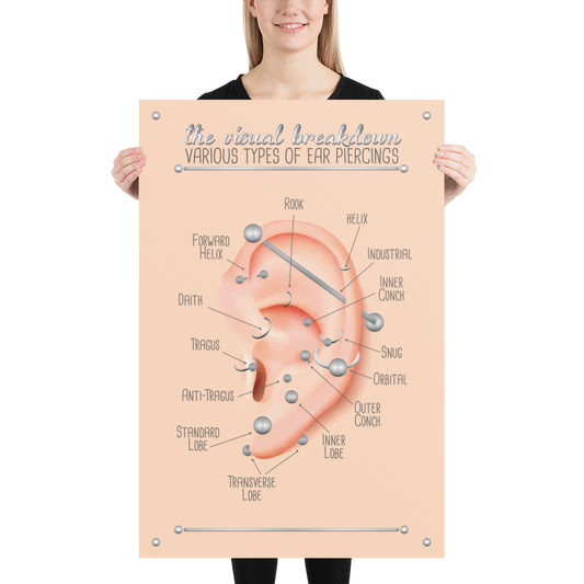 Black and Grey Ear Piercing Chart, Showing Various Ear Piercings Giclée Print