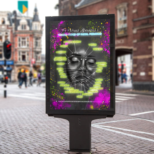 Face Piercing Chart Infographic Poster Wall Art Print, Various Piercings Map
