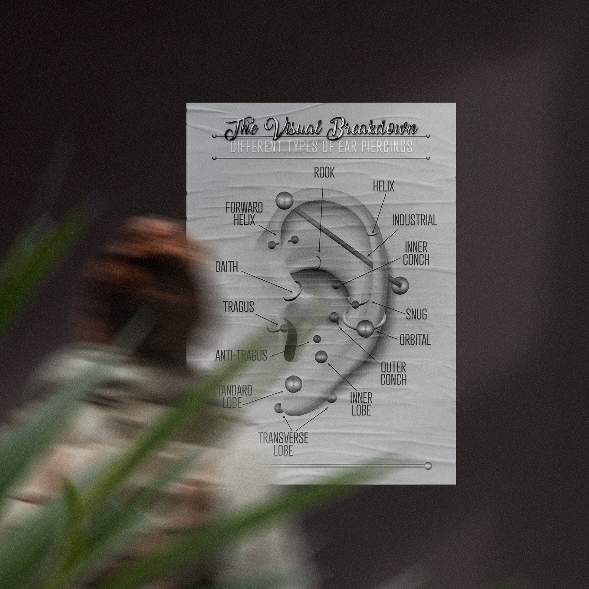 A comprehensive and well researched ear piercing infographic chart. The perfect gift for piercing enthusiasts or professionals, alike.