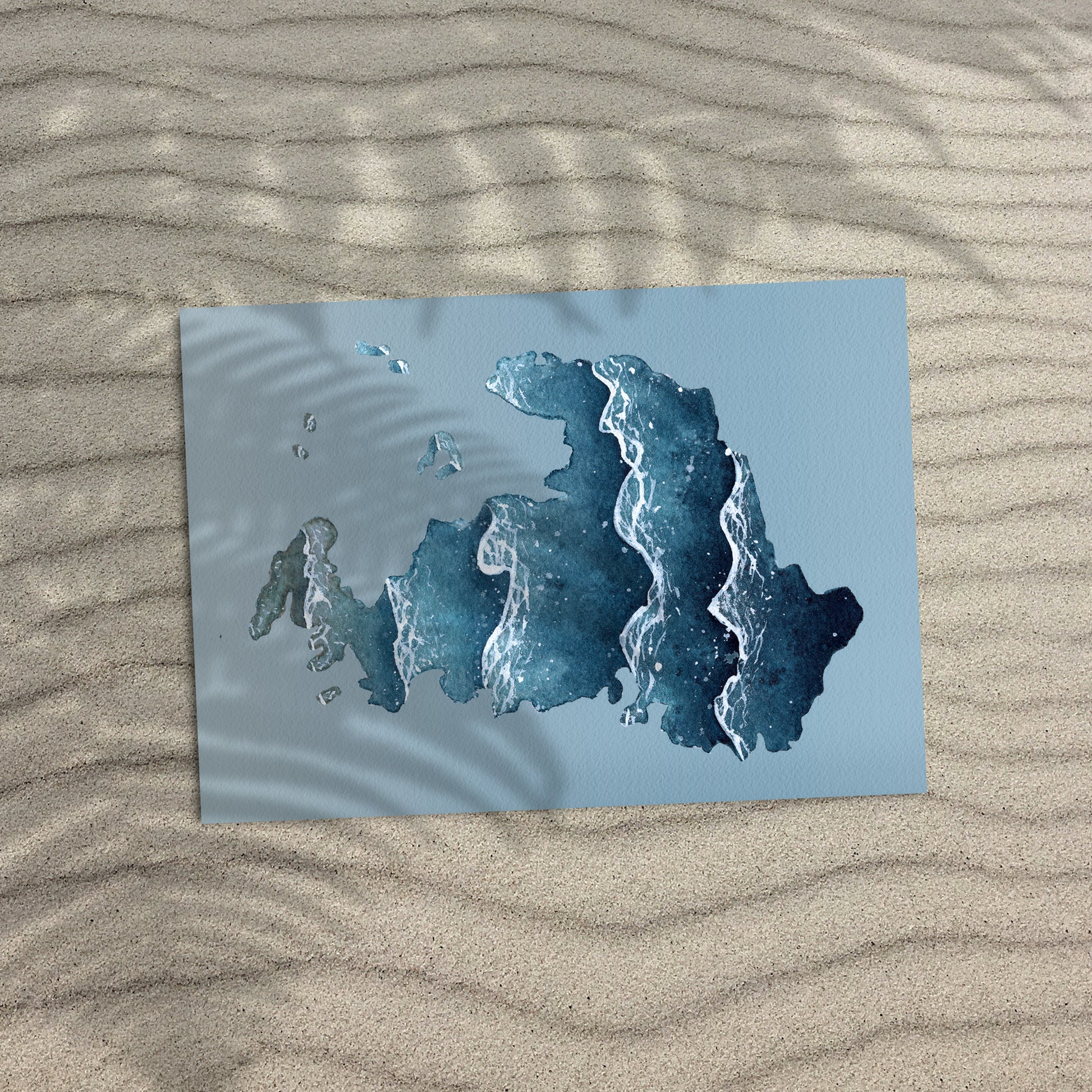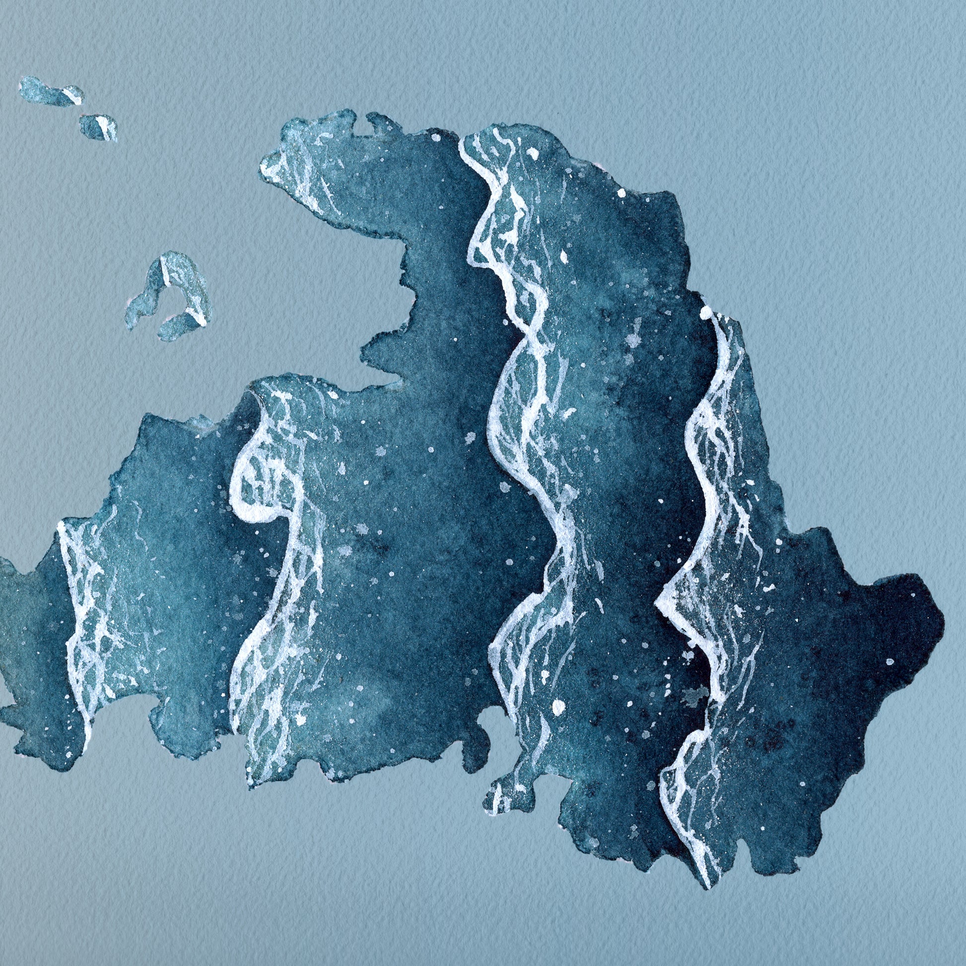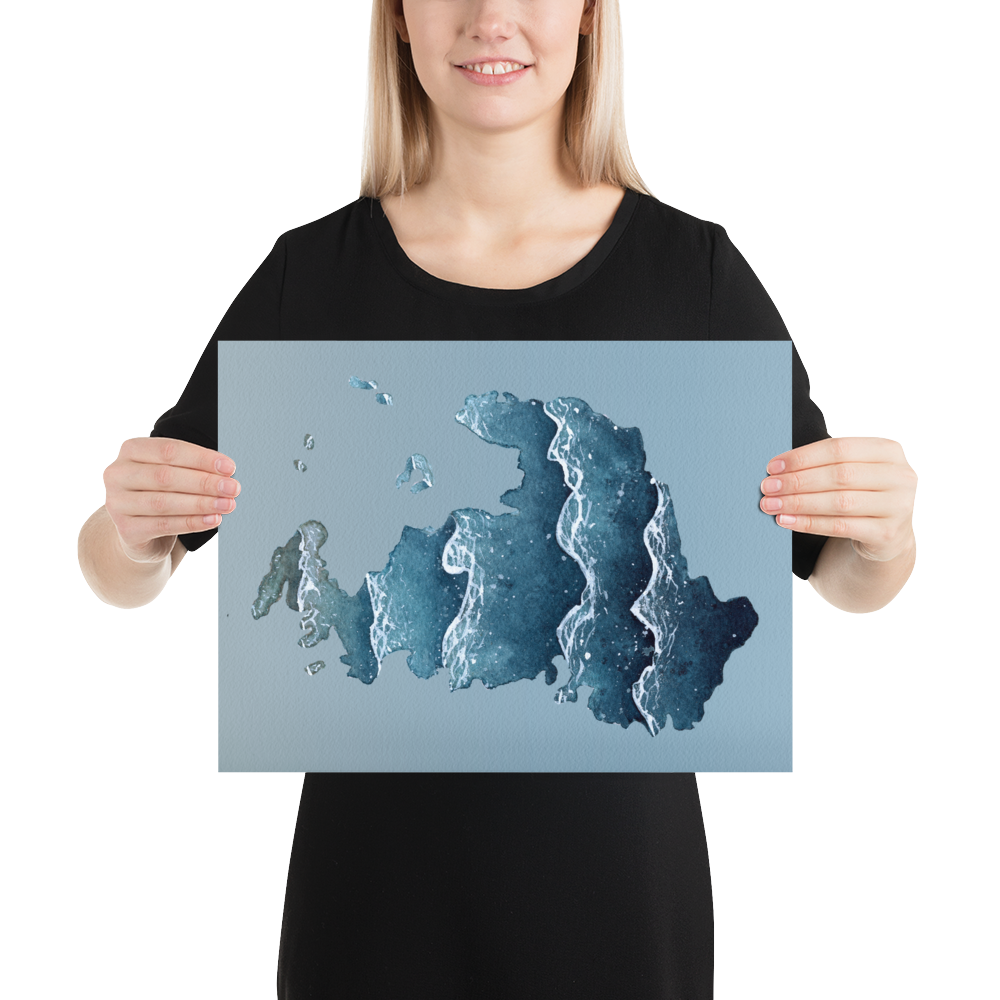 A watercolor silhouette of Drummond Island located in the Upper Peninsula of Michigan and a unique way to either showcase your pride in it or remember a trip to it. This print is made from a hand-painted watercolor painting, painted with handmade paints made from sustainably and ethically collected pigments and watercolor paints I made myself from the Upper Peninsula of Michigan.