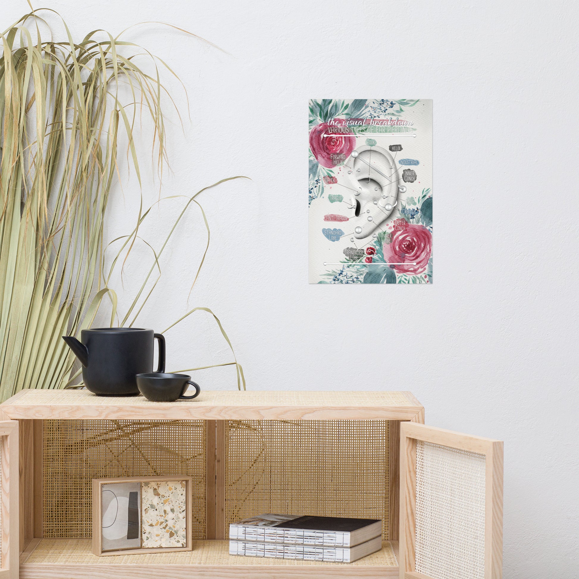 Hand-painted with beautiful and classic loose watercolor florals of roses, greenery and forget-me-nots, this bring education along with a touch of watercolor to your space. A comprehensive, well researched and complete facial piercing chart. Intended for professional use, but perfect for piercing enthusiasts.