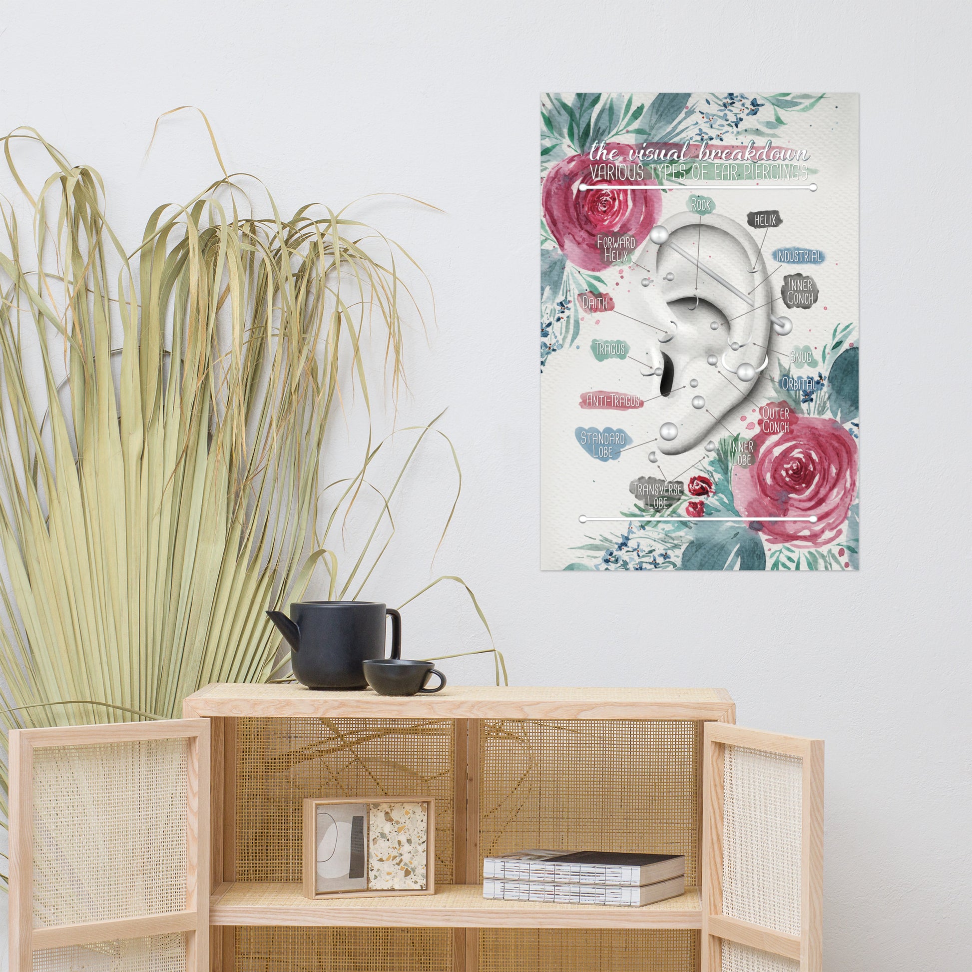 Ear Piercing Chart with Hand-Painted Loose Watercolor Florals