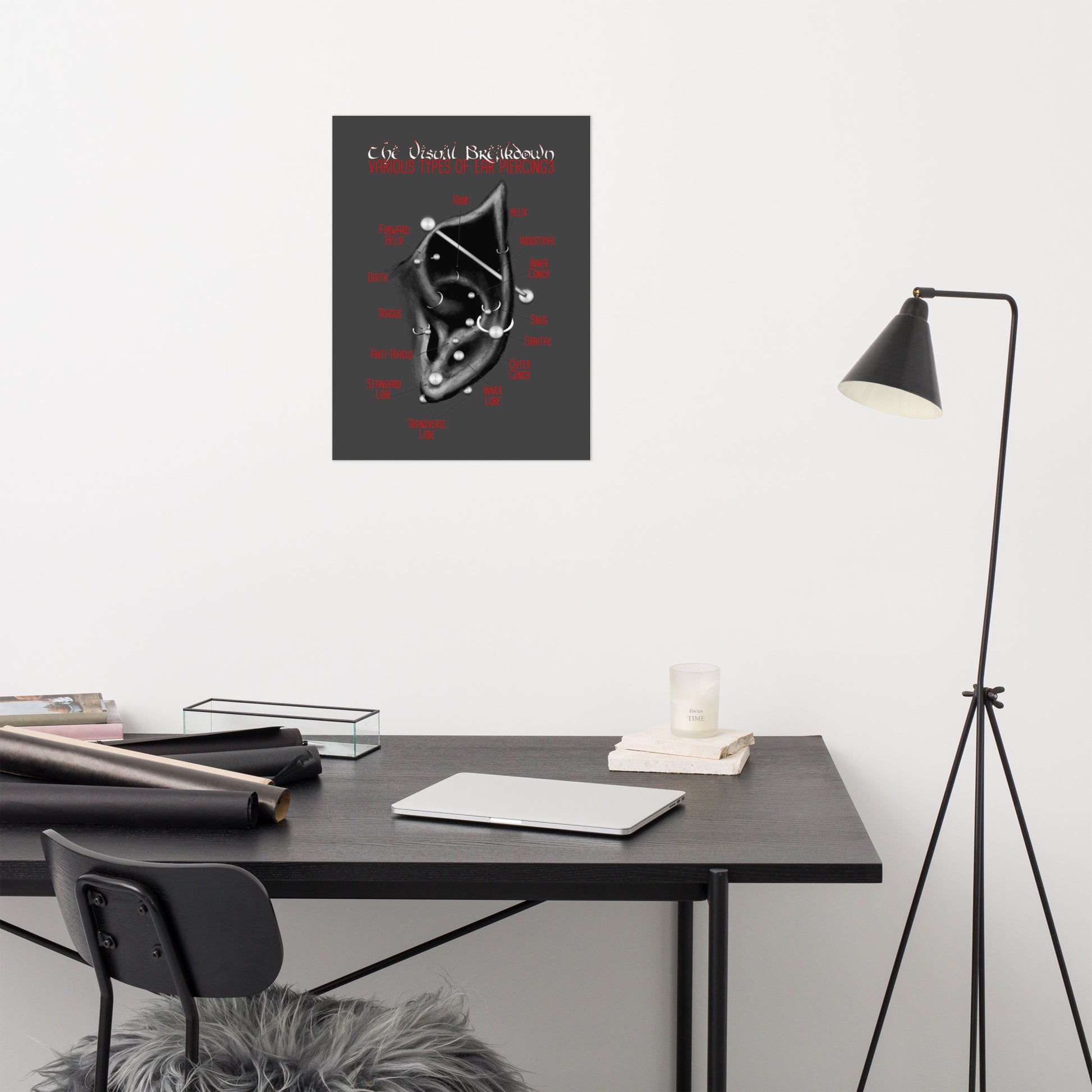 Elven Ear Piercing Chart, Black and Red