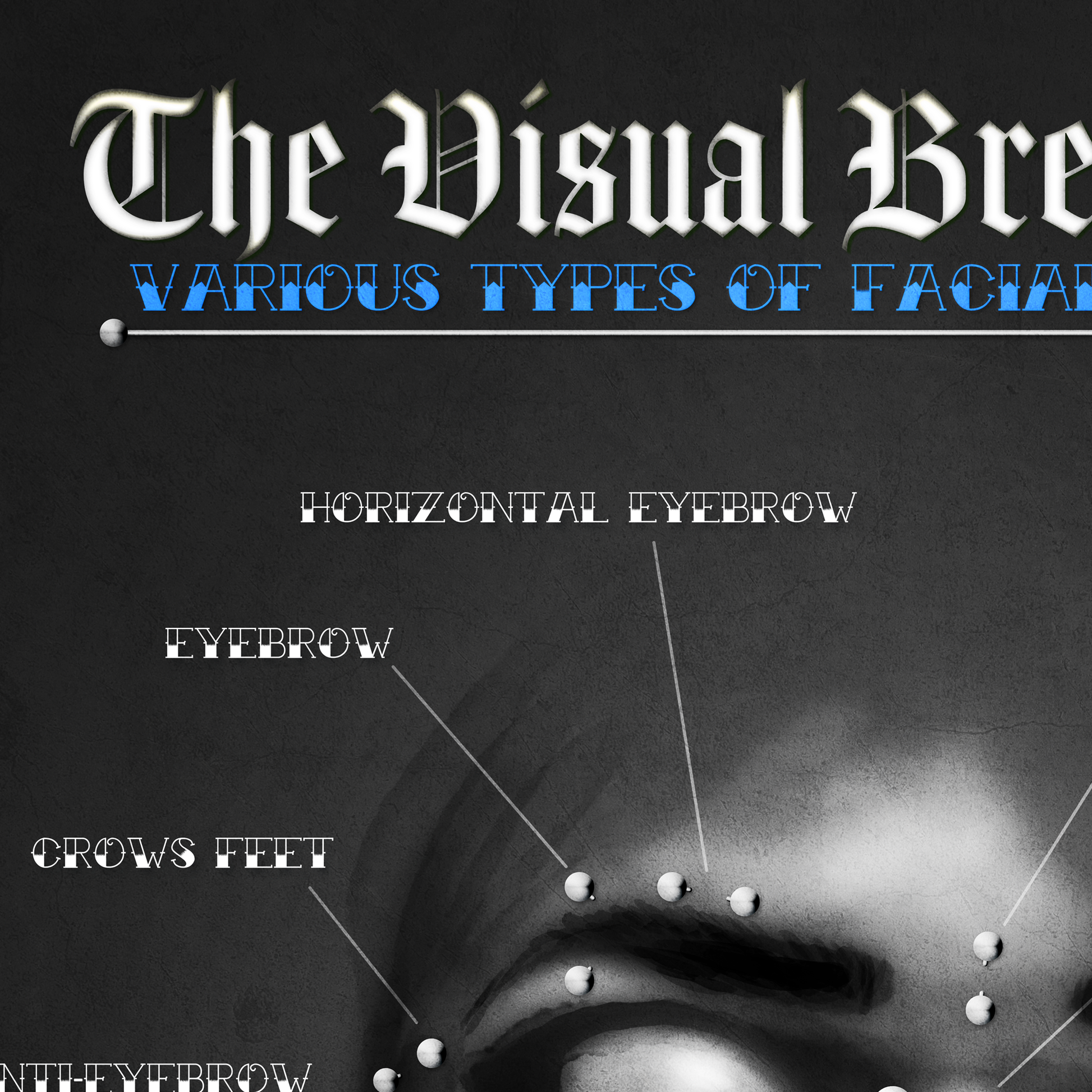 Facial Piercing Chart, Blue Grunge