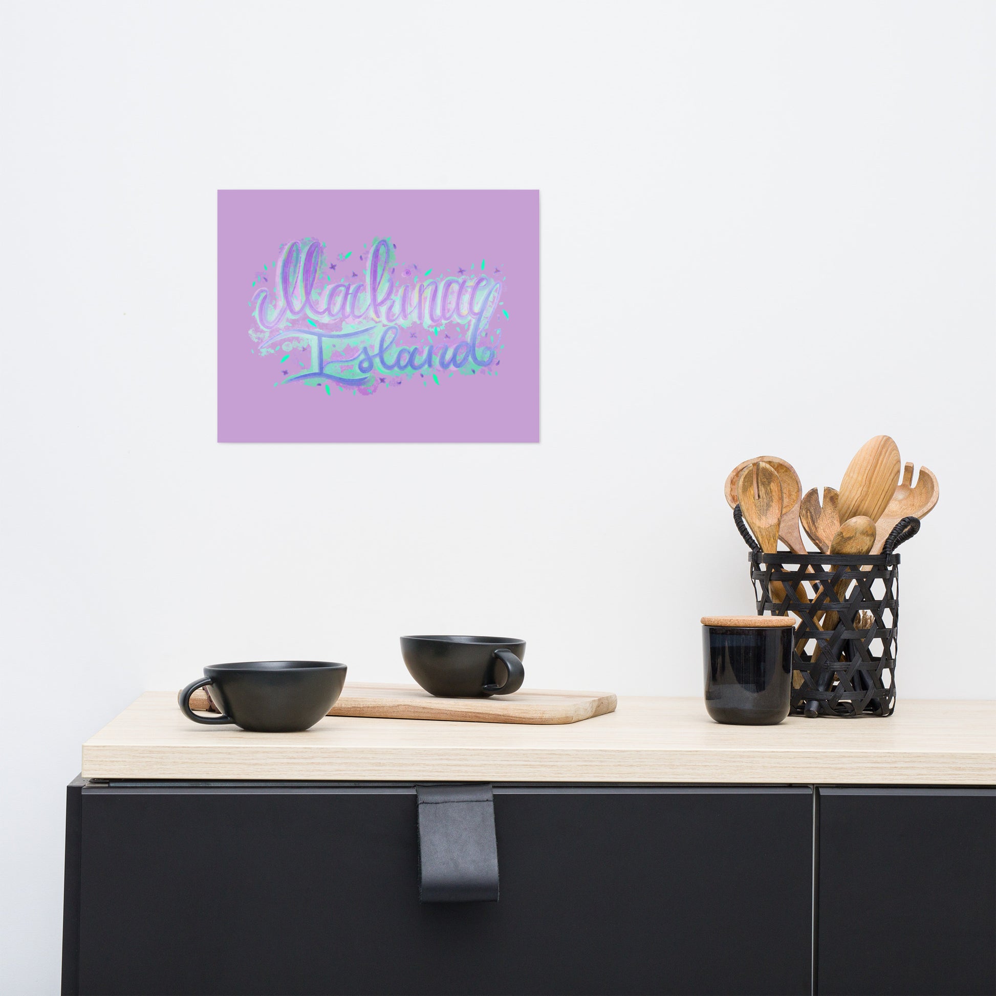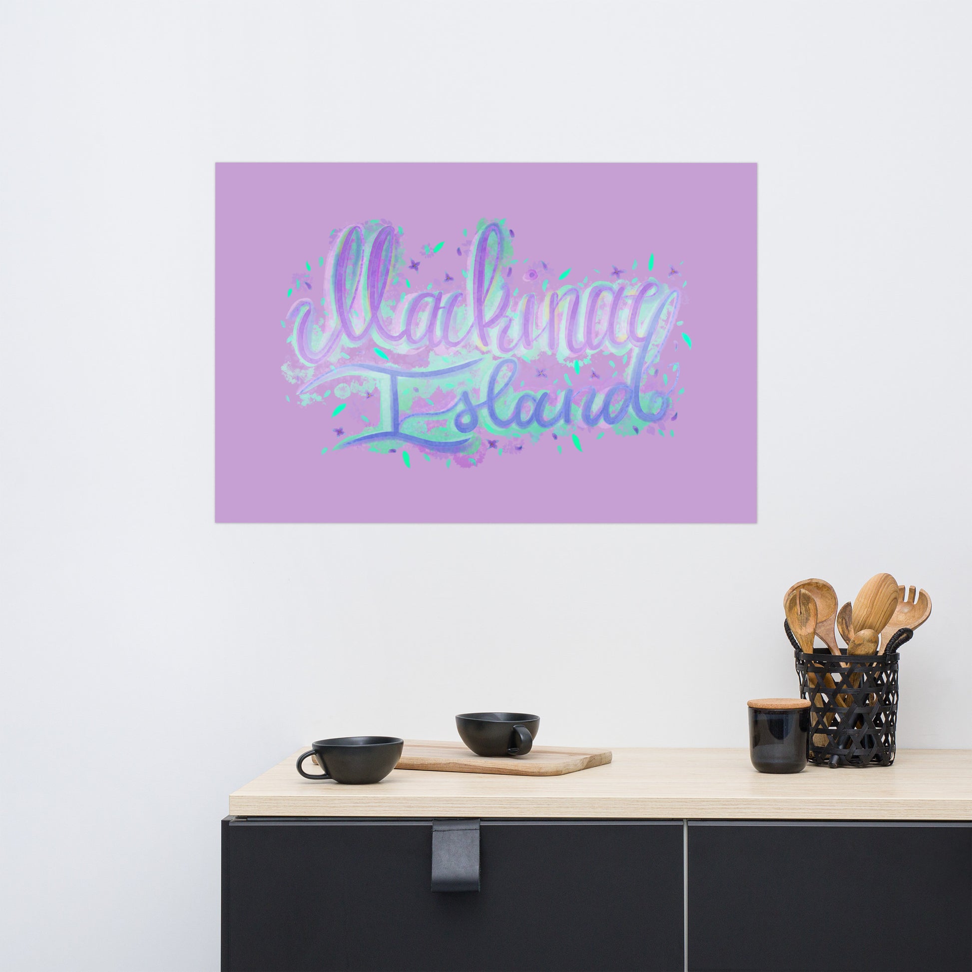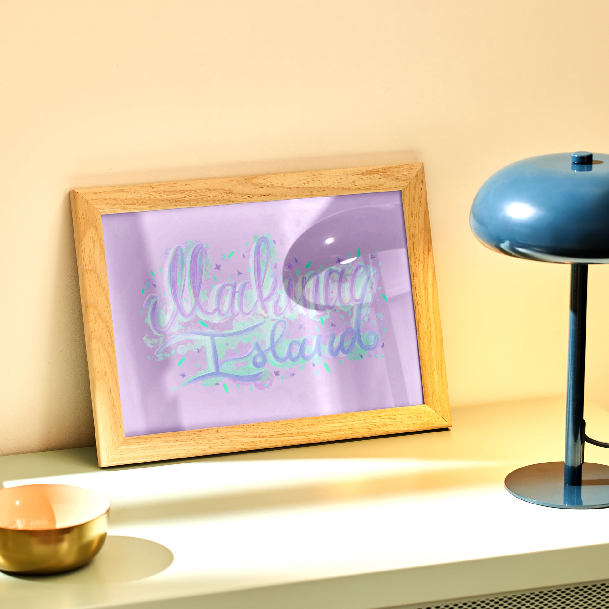 A hand-done lettering piece in a whimsical watercolor style for those who adore Mackinac Island, Michigan, USA. With touches and nuances of lilacs, this piece brings a touch of light to any wall.