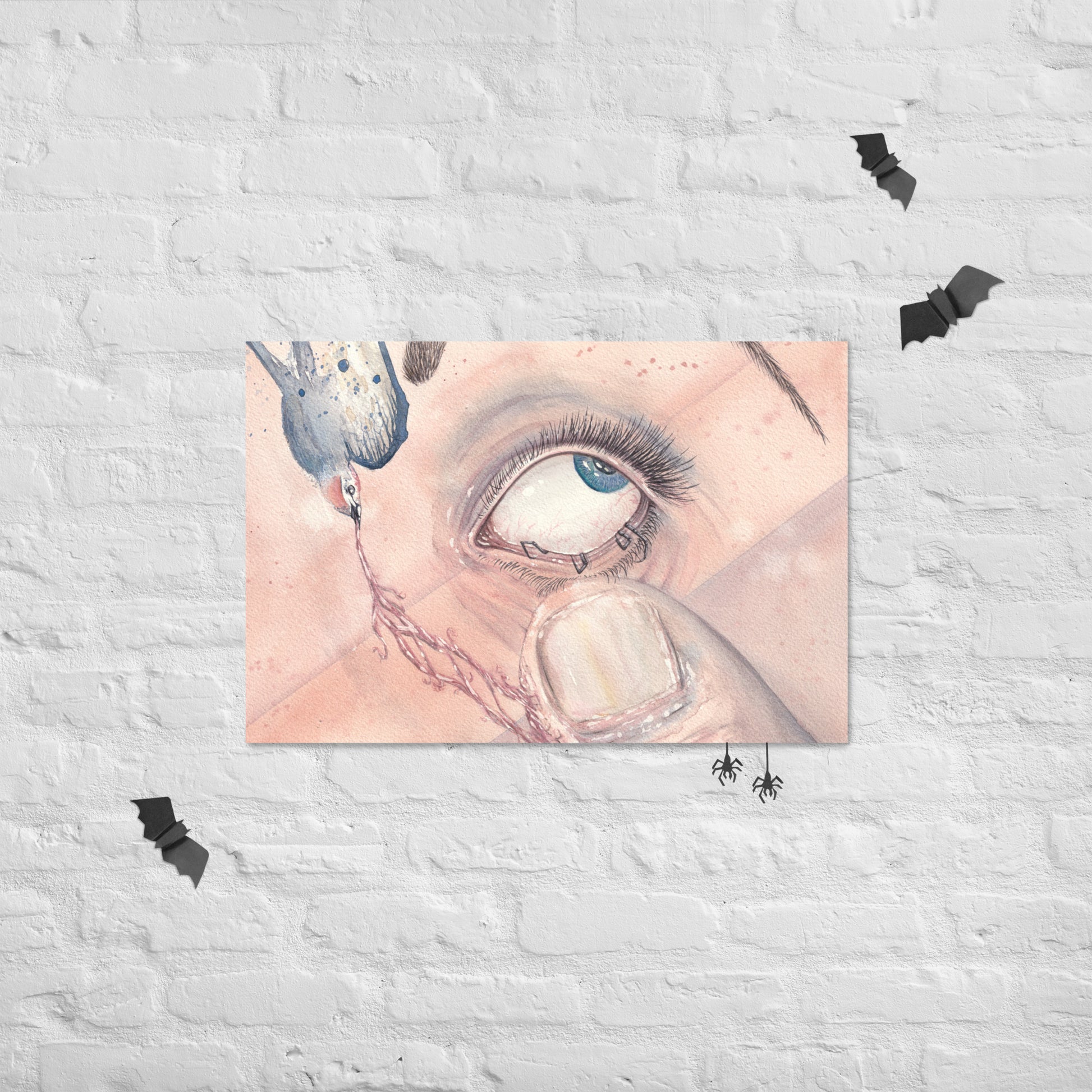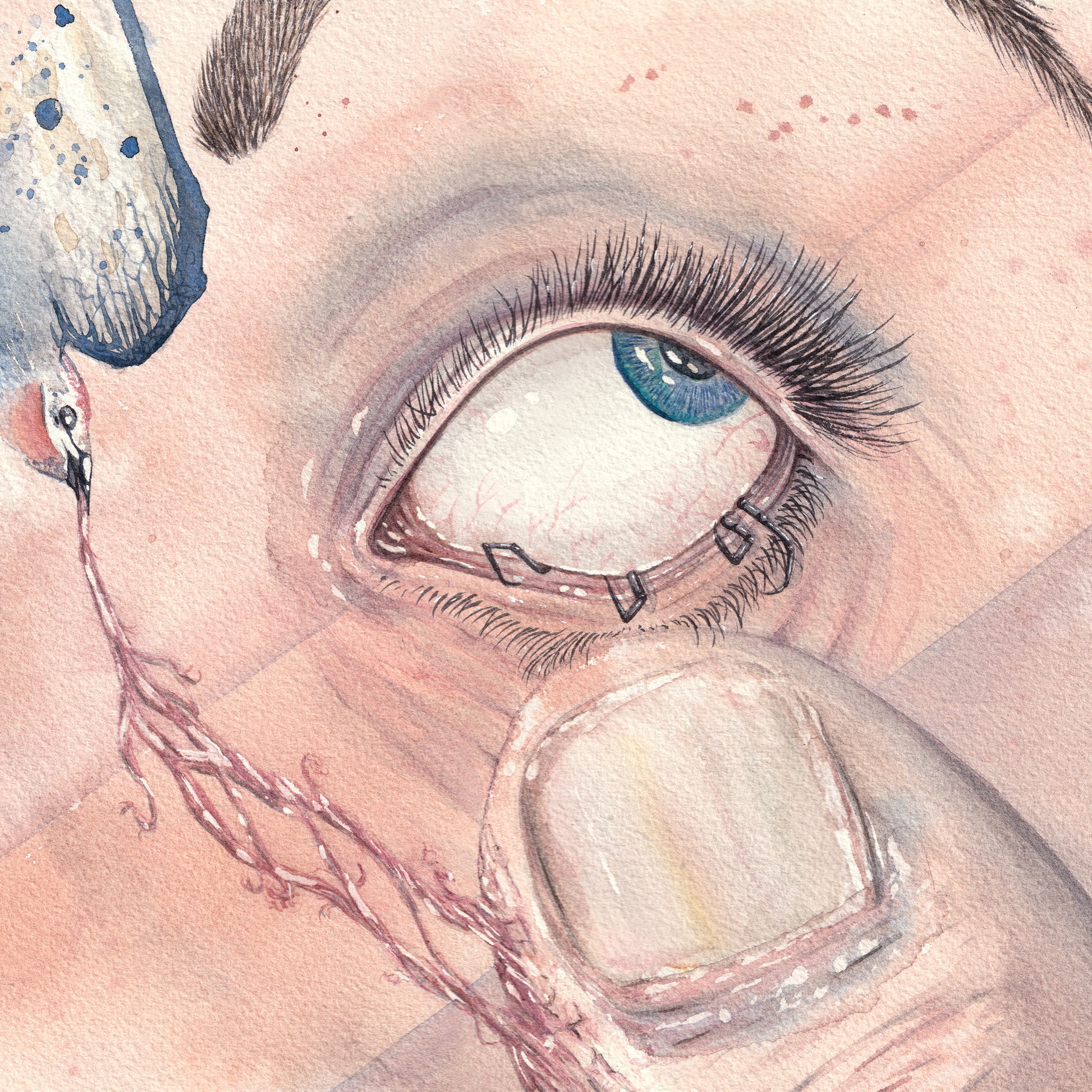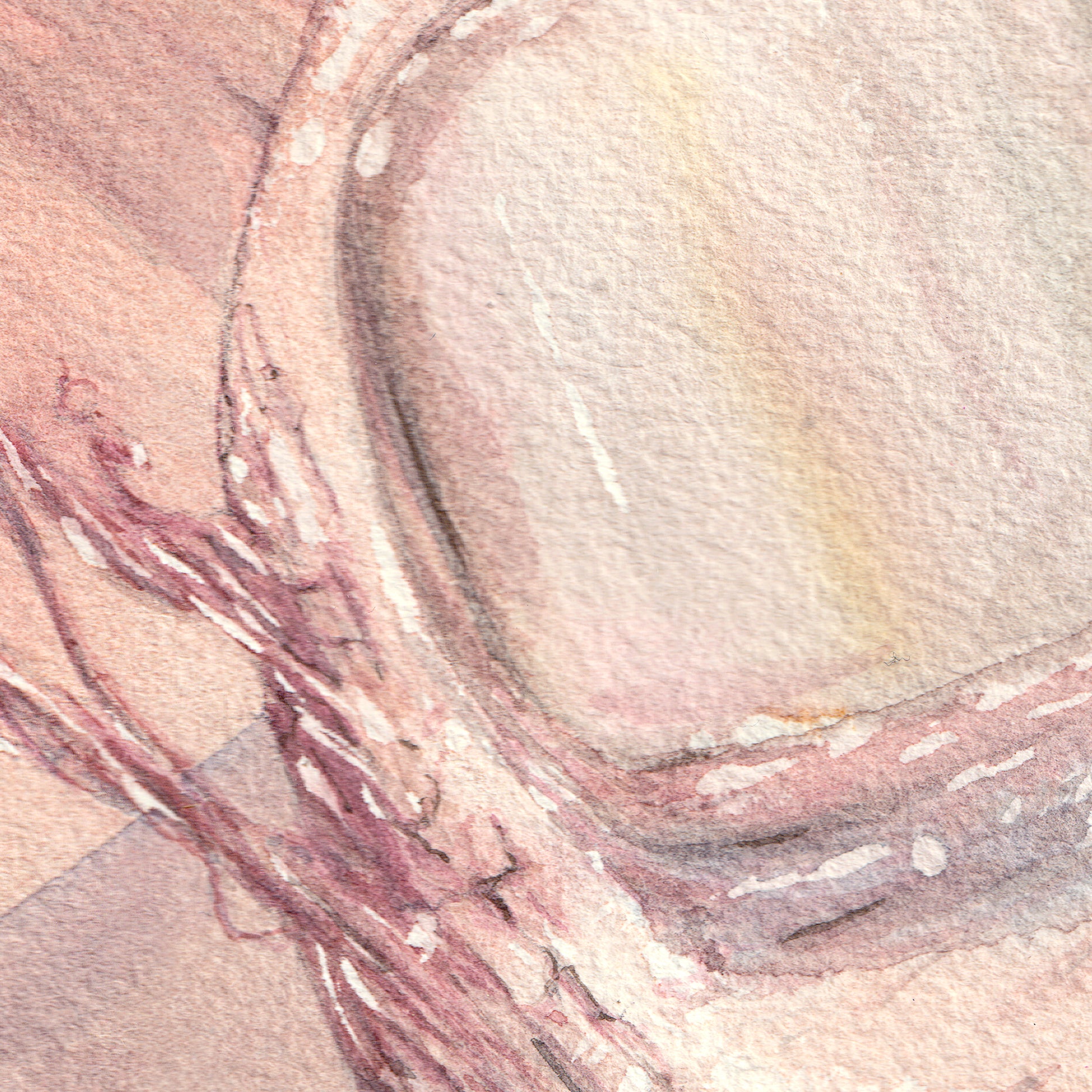 A hand-painted watercolor piece painted with my own handmade watercolor paints. Based on a friend's explanation on her dreams when in the grips her a narcoleptic sleep.