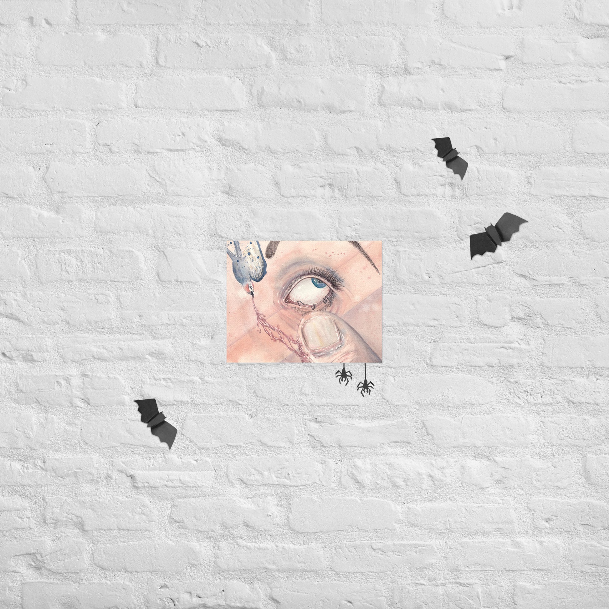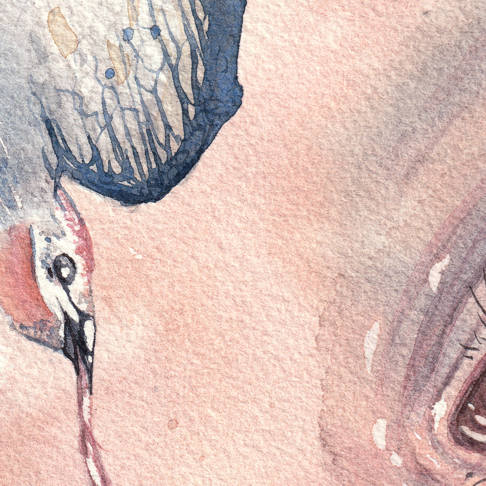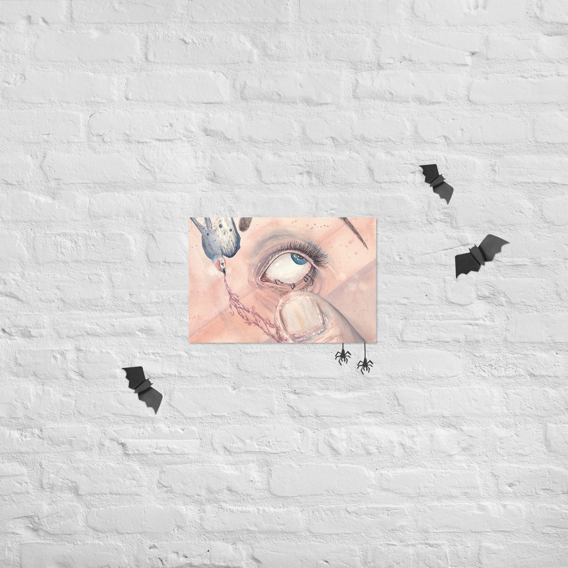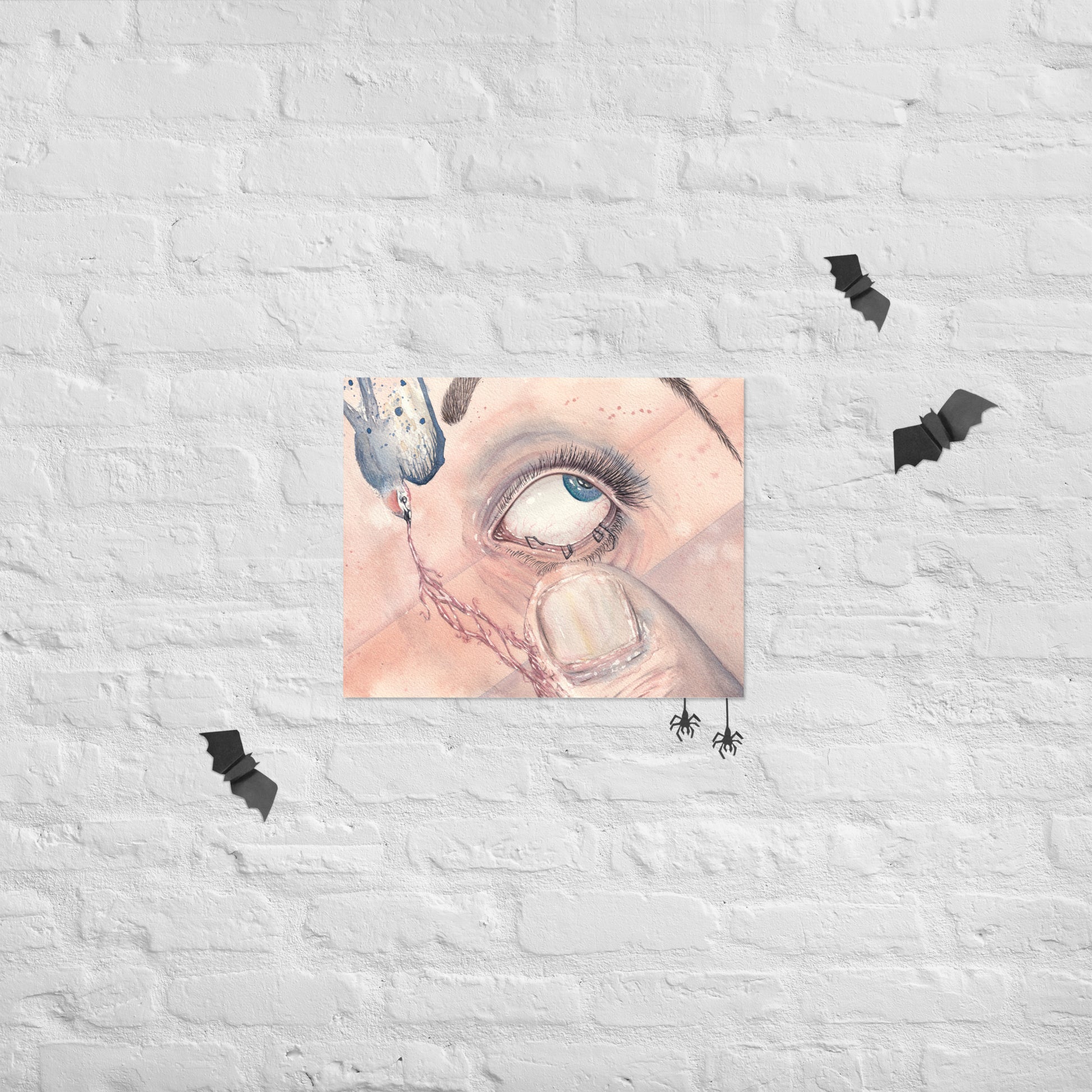 A hand-painted watercolor piece painted with my own handmade watercolor paints. Based on a friend's explanation on her dreams when in the grips her a narcoleptic sleep.