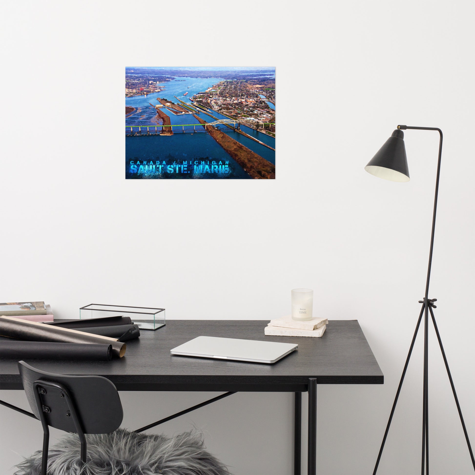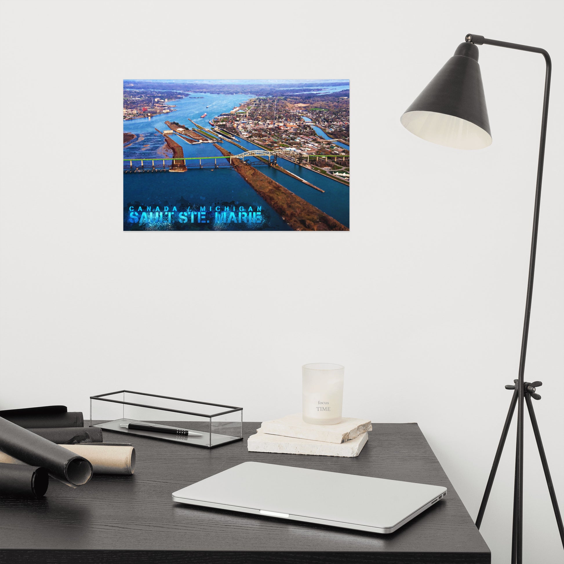 A painting of the Locks that traverse Michigan and Canada, both. Essential to trade, travel and a lifeline to both countries, it's a sight to behold.